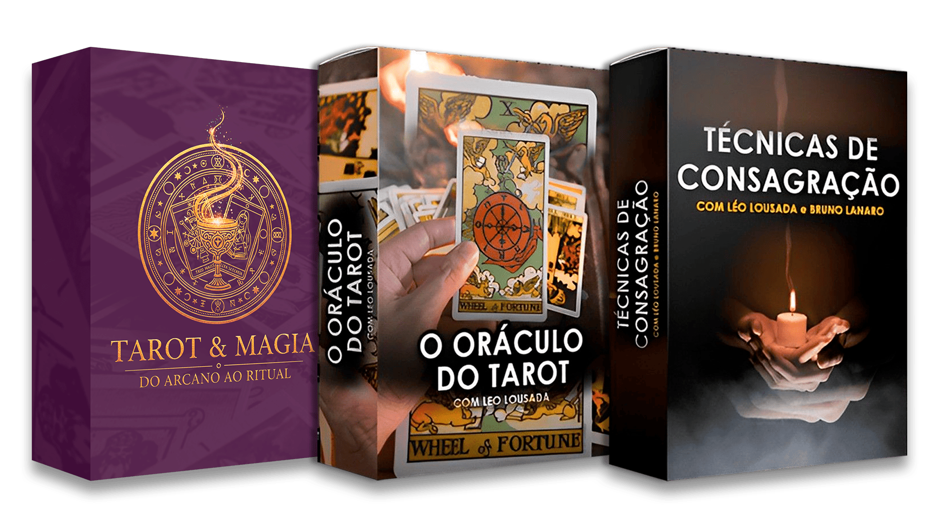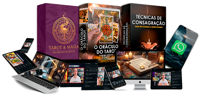 Acesso a 3 cursos complementares que unem o estudo simbólico, a prática mágica e a consagração ritual formando um caminho completo de transformação com o Tarot