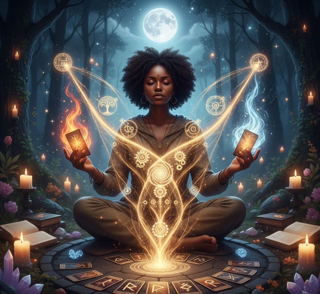 E é isso que a maioria das pessoas interessadas em ocultismo e Tarot também enfrenta: falta de um método estruturado que una leitura simbólica, prática mágica e consagração de forma ética e segura.