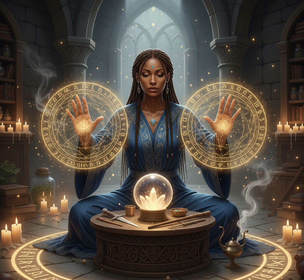 Você vai do “tirar cartas” à ação mágica, aprendendo selos, sigilos e práticas energéticas com base nos Arcanos.